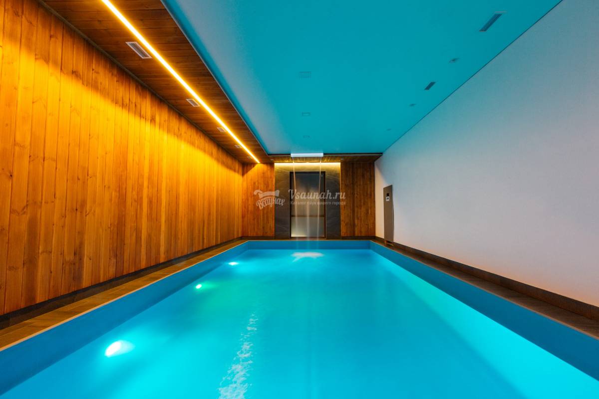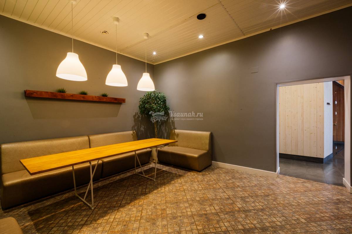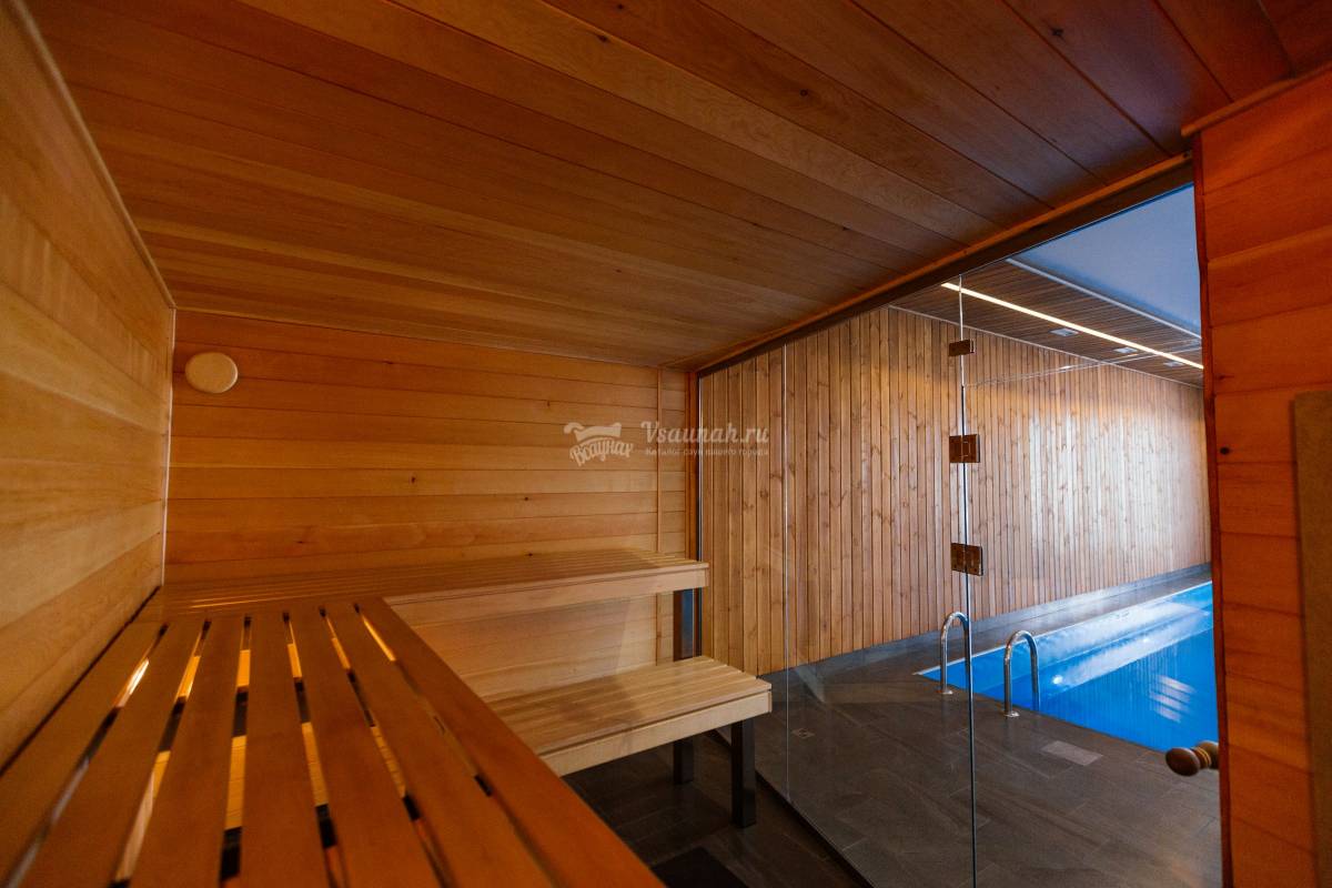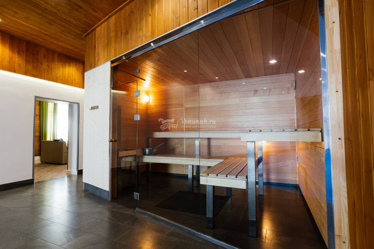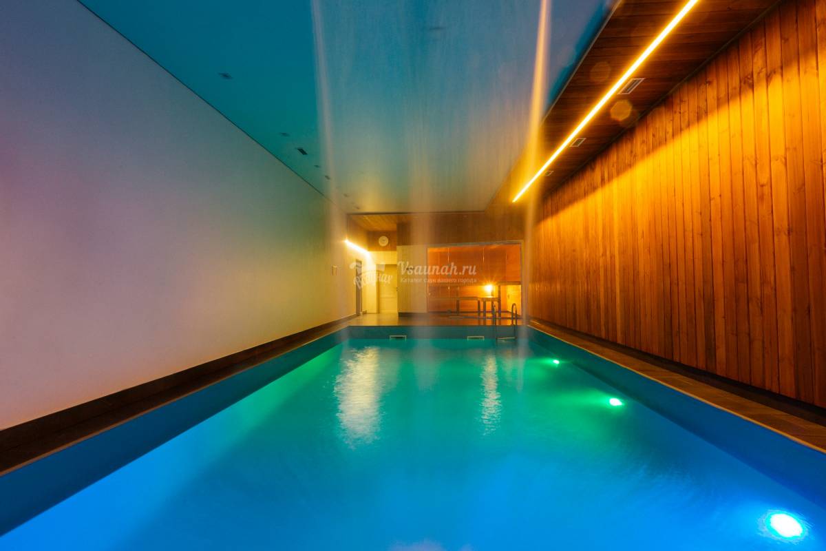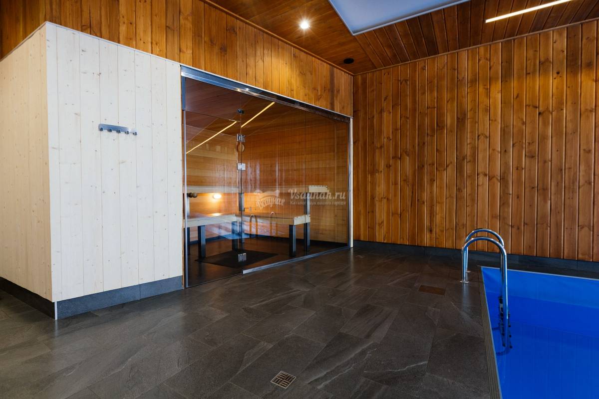 Кедровая сауна в современном стиле. Тёплый плавательный бассейн 5*10 метров с глубиной 1,3 метра (для семей с детьми). Водопад гидромассаж. Дневной свет, падающий из французского окна. Комната отдыха до 20 человек. Тёплые полы. Светотерапия в плавательной зоне. Сантехника премиум уровня. Европейский дизайн. Выход на террасу с мангалами. Возможность заказать полный банкет по меню в сауну. Частичка Европы в нашем городе.