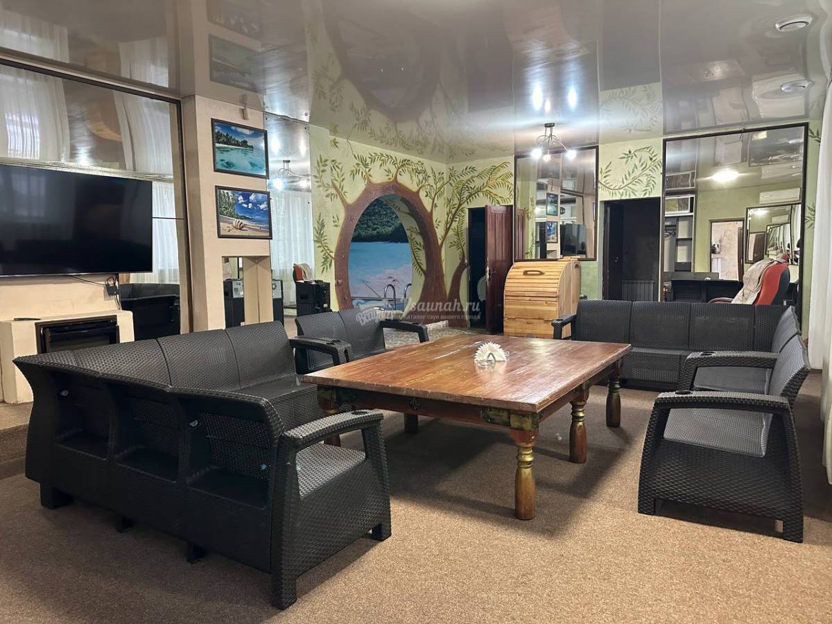 Сауна №3: Зал вмещает до 6 персон. Выполнен в современном стиле, имеется парная и душевая, гидромассажное джакузи, аудиосистема и комната отдыха.